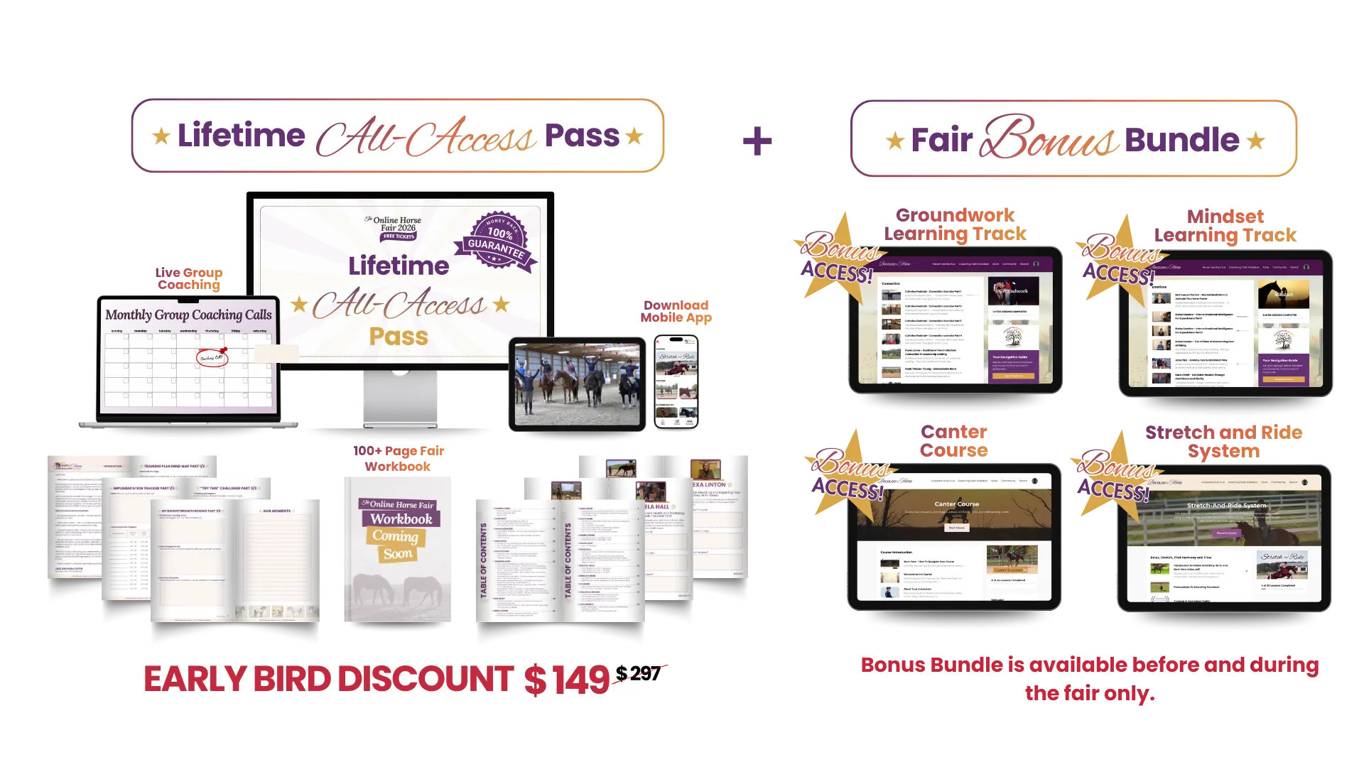 â The complete Fair Bonus Bundle, including the Groundwork Track, Canter Course, Stretch & Ride System, Mindset Track, and Workbook