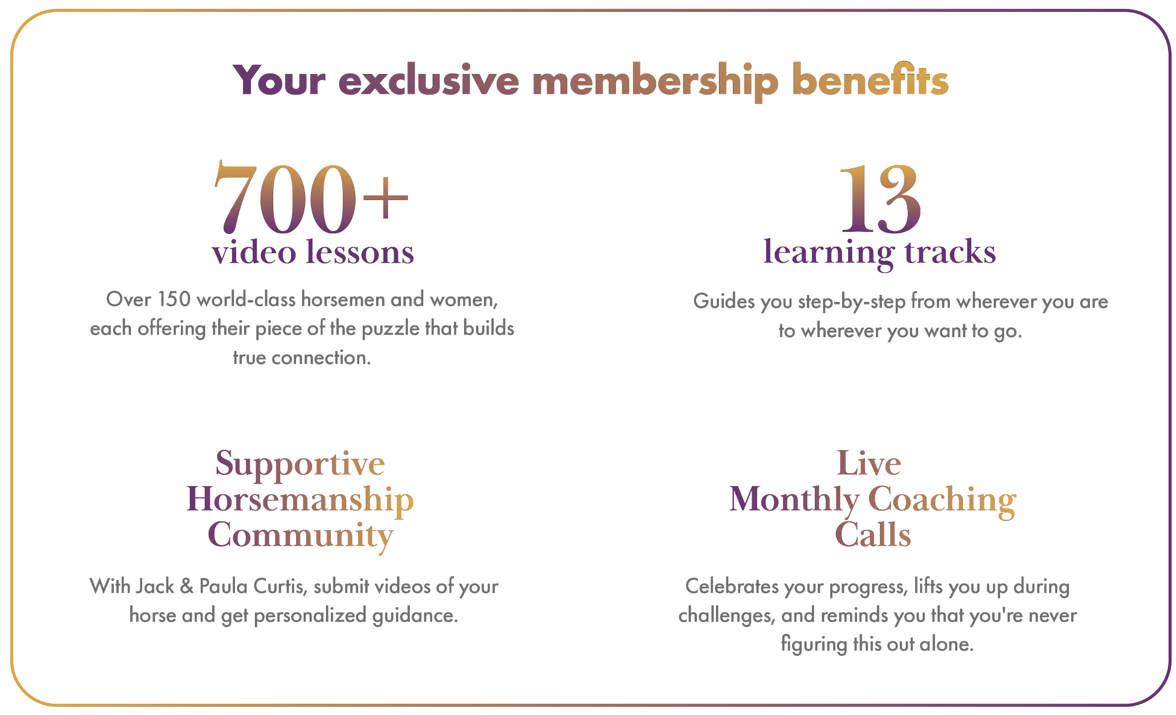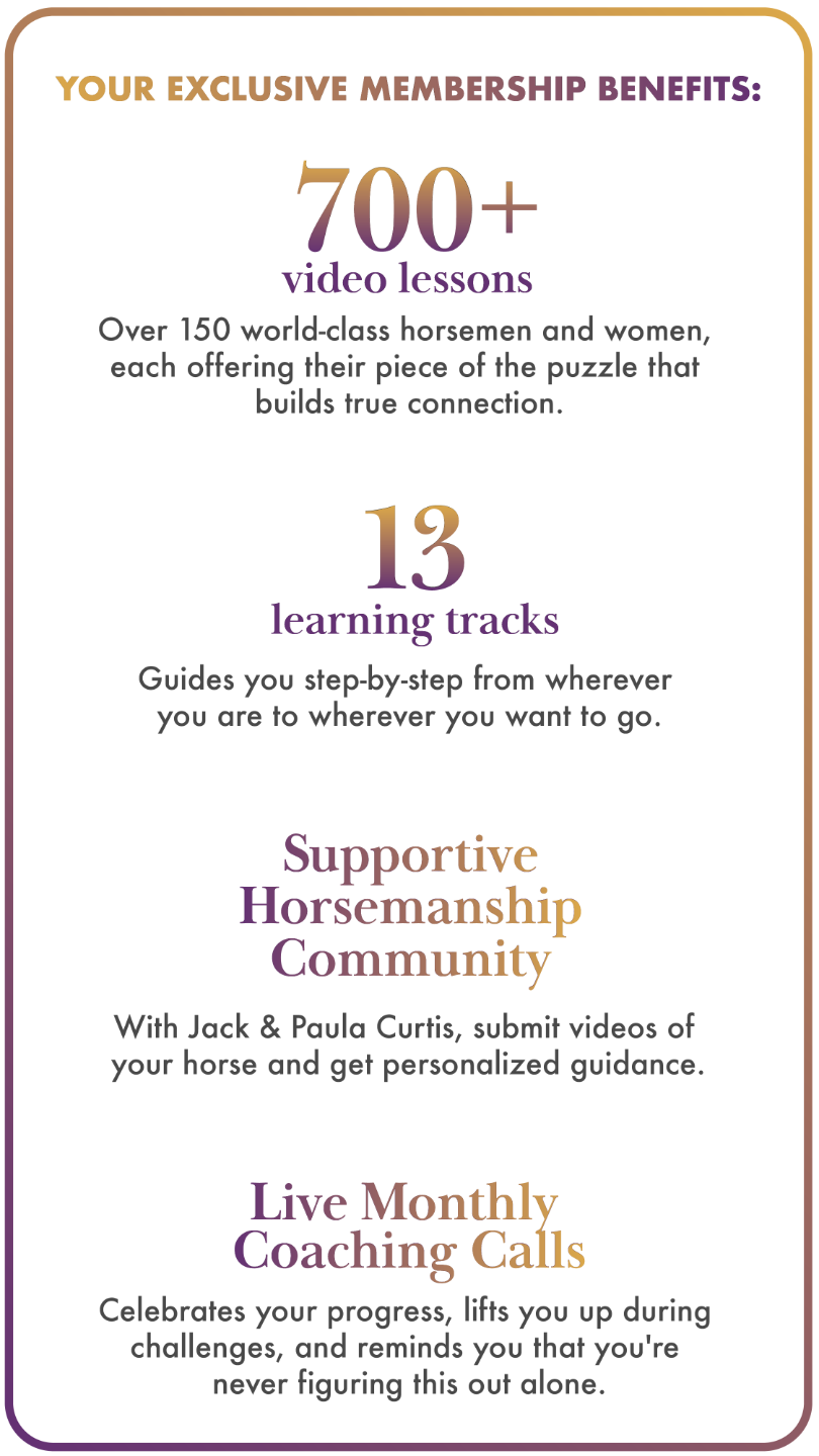 You've just joined a community of equestrians and equine professionals who believe that how we treat our horses matters just as much as what we teach them.